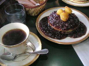 豊橋市といえば、市電の街。 この市電が走る通りに面して[三愛 サンアイ]というカフェが有る。以前から気にはなっていたのだが、駐車場が狭いので気軽に車で行けないという思いがして躊躇していたのである。が、ホットケーキが美味しいという評判を聞きつけ意を決して入って見た。店内は、歴史を感じさせる雰囲気が漂っていて、年配のマスターに市電の見える窓際の席を案内して頂いて一息つき、早速メニューに目を通してみる。珈琲の種類とホットケーキの種類の多さに感嘆し、モカマタリと栗ぜんざいホットケーキを注文した。各々30種類はあろうかという種類である。マスターにモカマタリと告げると「マタリですね。」と返され、あっ「マタリをお願いします。」って言った方が通っぽくて良かったかと後悔させられてしまった。しばらくすると、マタリと栗ぜんざいホットケーキが運ばれて来た。・・・なっなんと、ホットケーキが栗ぜんざいに覆い隠されているでは有りませんか!もちろんマタリはブラックで、窓の外の市電の行き交うのを見つつ、栗ぜんざいホットケーキを心行くまで堪能させて頂きました。 ![]() ![]() |